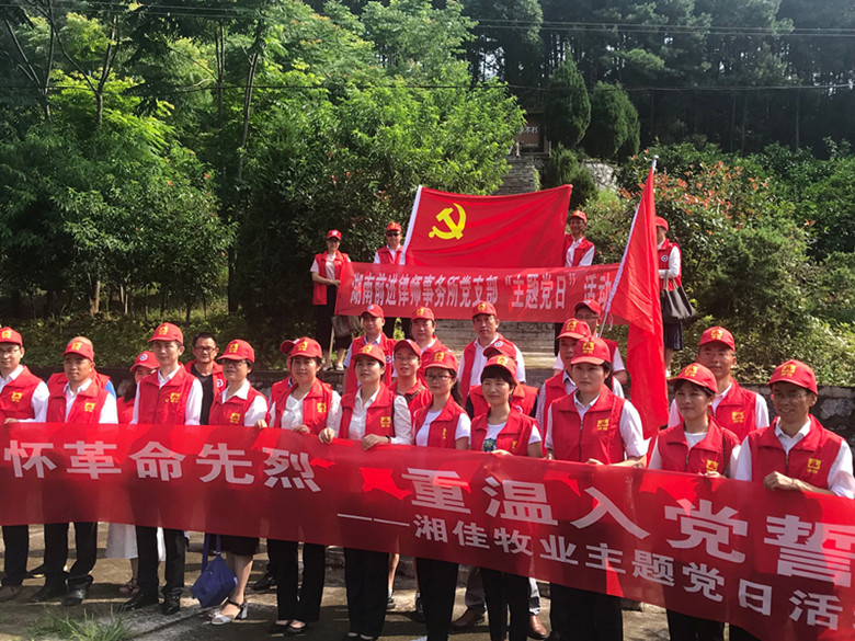 南鄉起義烈士:91年過去了,我們沒有忘記! 6月23日上午,湖南省石門縣夾山鎮西周村。雨后初晴,青山泛綠,黨旗飄飄,衣衫鮮紅。一場莊嚴的“緬懷革命先烈,重溫入黨誓詞”活動在這里如期舉行。組織者:湖南湘佳牧業股份有限公司黨支部、石門縣前進律師事務所黨支部。上午9點,西周村村部。湘佳牧業和前進律師事務所黨支部舉辦了“獻愛心”活動,為該村5位烈士后代和貧困戶每戶發送了500元慰問金和30